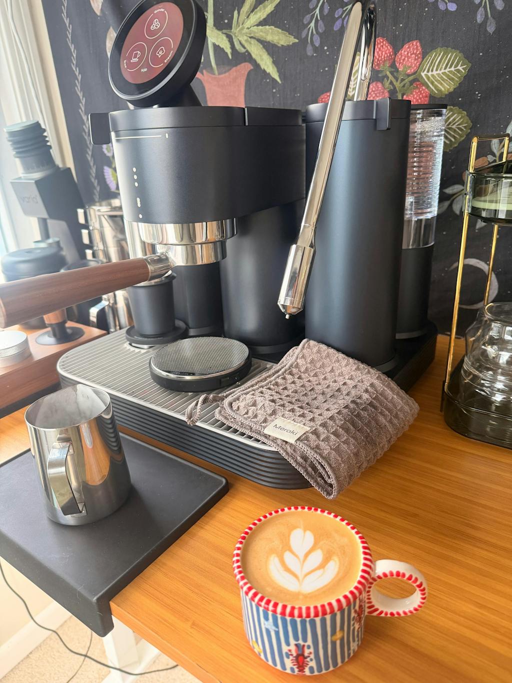 This machine has everything you need to get started with your home barista journey. It’s a great machine for anyone ranging from like a beginner, all the way to being a pro.