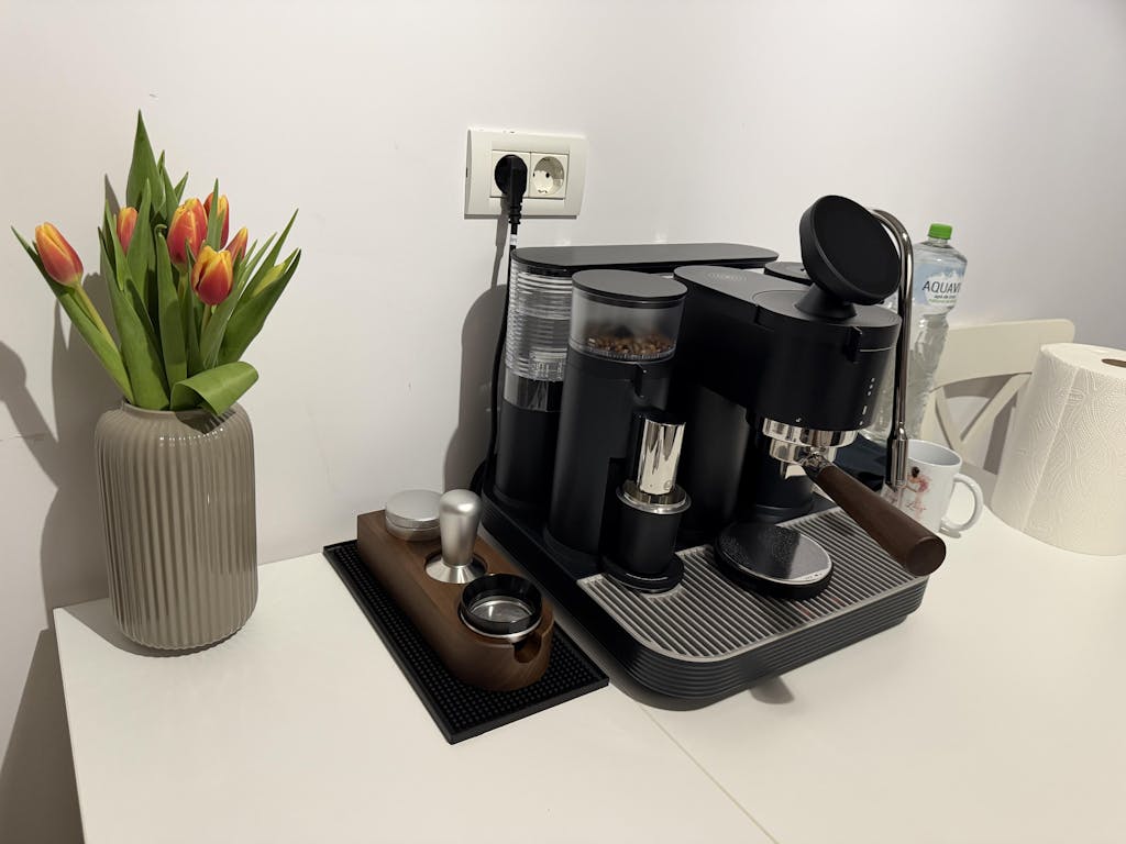 Diseñada para complementar su cocina, Meraki combina una estética premium con una eficiencia compacta. Su forma minimalista y sus acabados de alta gama la convierten tanto en una pieza de diseño exclusiva como en una cafetera de alto rendimiento, llevando el café de calidad profesional a su hogar con elegancia y facilidad.