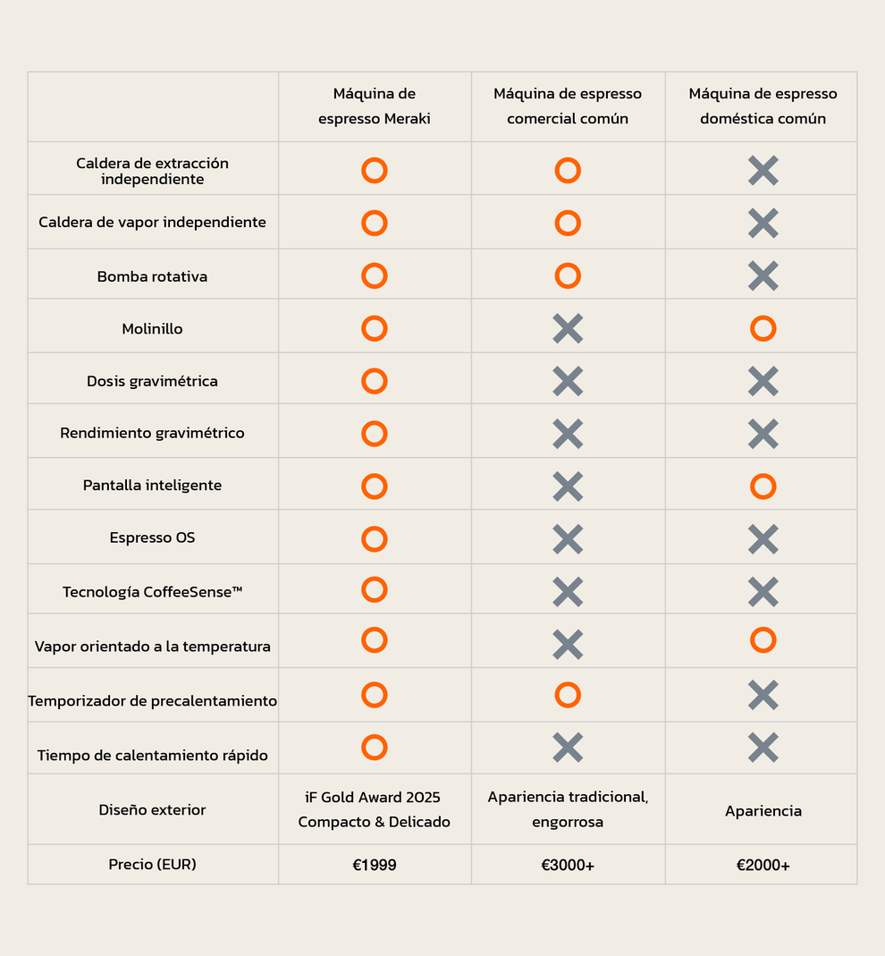 Meraki combina un rendimiento de alta gama con un diseño intuitivo. Ganadora del iF Design Gold Award 2025, cuenta con balanzas gravimétricas dobles, interfaces claras y un funcionamiento fluido, lo que facilita a cualquiera la elaboración de café con calidad de cafetería, desde leche sedosa hasta un espresso equilibrado, sin conjeturas.