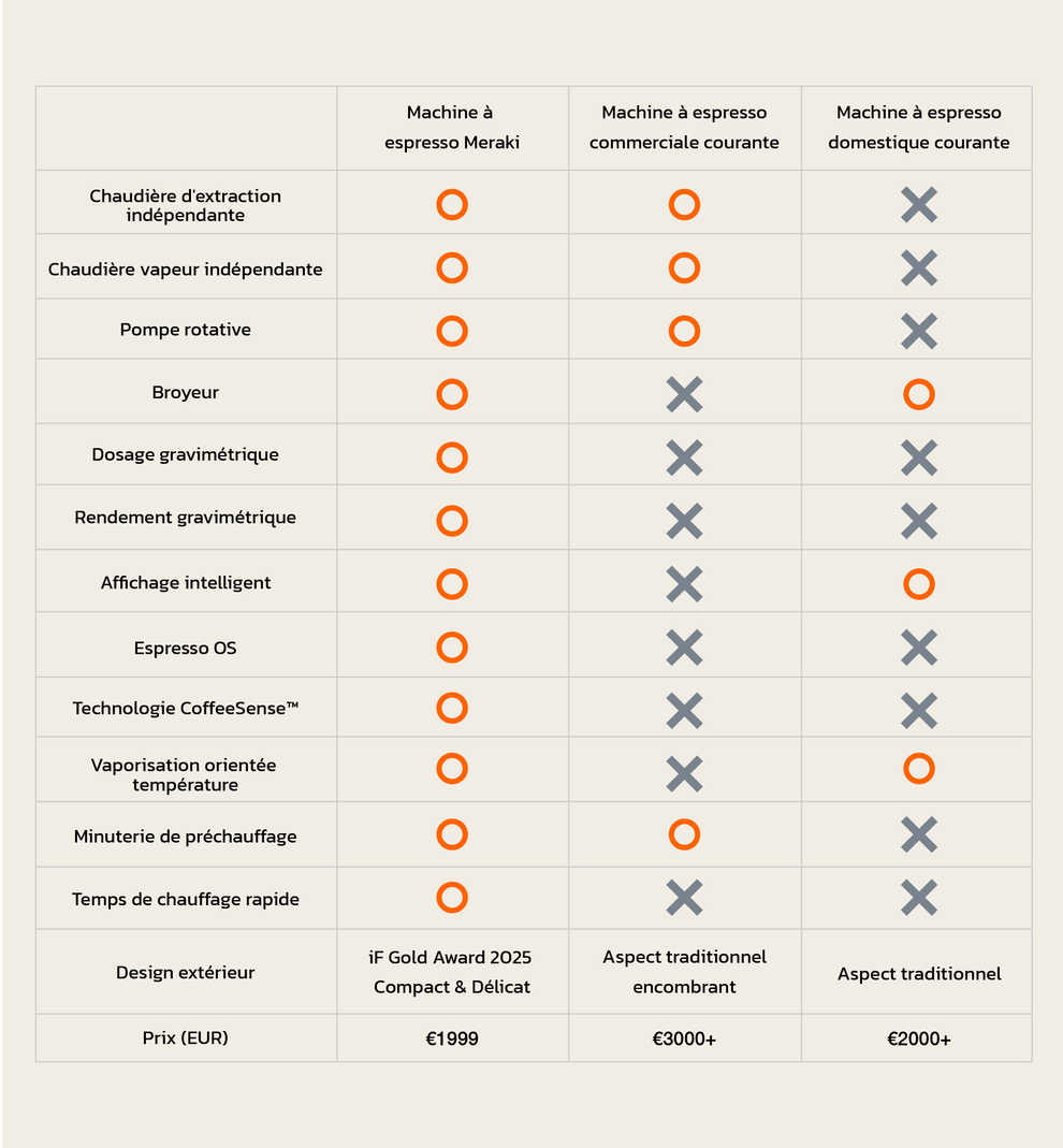 Pendant des années, faire un espresso à la maison était synonyme de compromis : des étapes complexes ou des résultats décevants.Meraki redéfinit l'expérience de l'espresso à domicile grâce à un design réfléchi et une performance professionnelle. La précision de niveau professionnel rencontre la simplicité au quotidien, pour que chacun puisse savourer sans effort un café digne d'un barista chez soi.Fini les étapes complexes. Fini les résultats décevants.