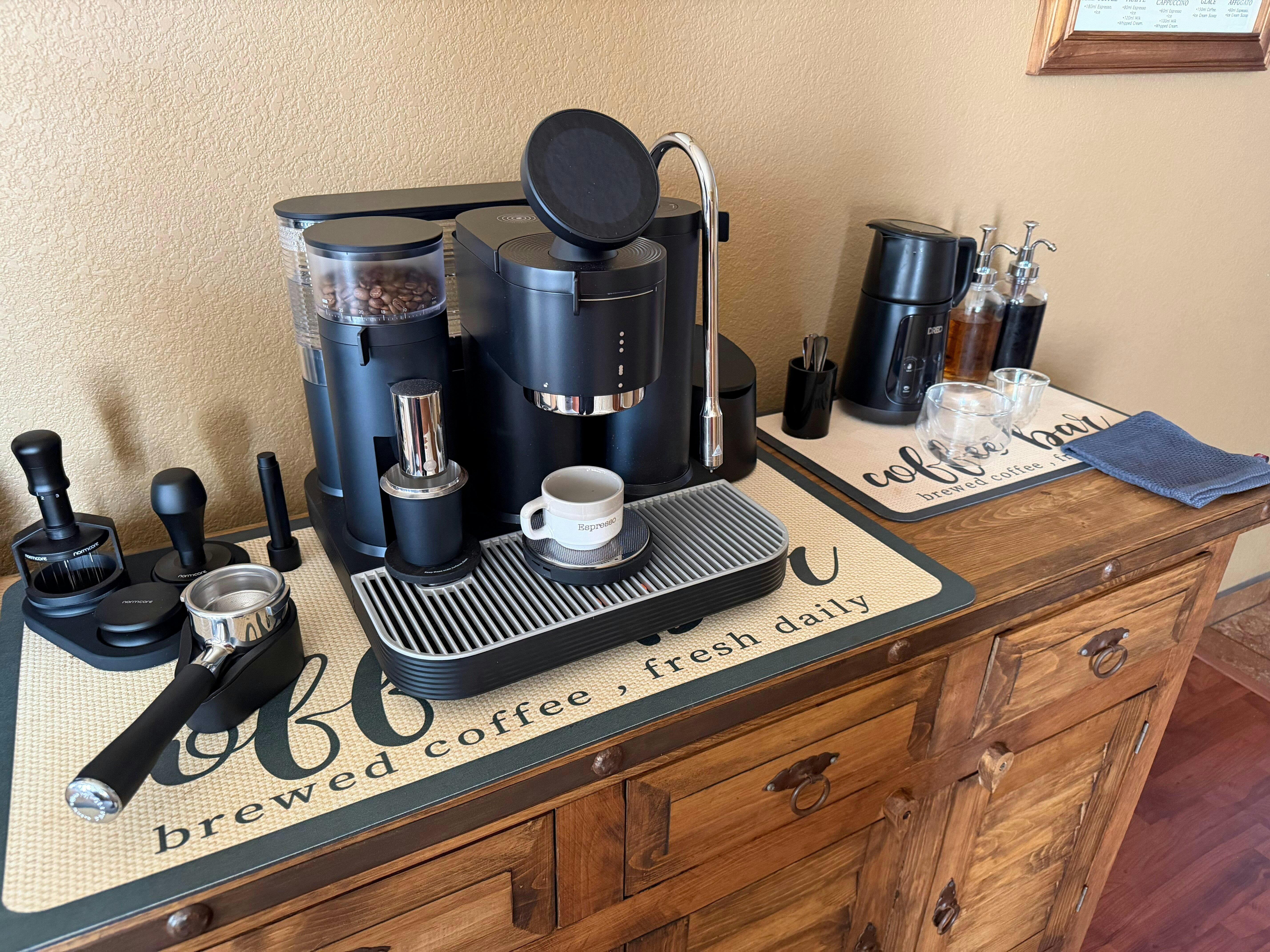 This machine has everything you need to get started with your home barista journey. It’s a great machine for anyone ranging from like a beginner, all the way to being a pro.