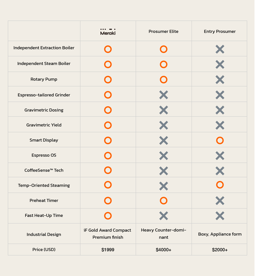 Meraki blends premium materials, minimalist aesthetics, and space-efficient design. It’s more than an espresso machine — it's a statement piece that elevates your kitchen while delivering uncompromising performance.