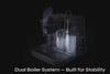 Dedicated brew and steam boilers, each stabilized by precise PID thermal control, keep temperature locked with no warm-up stress or shot-to-shot drift. True dual-boiler performance in a compact home professional espresso machine.